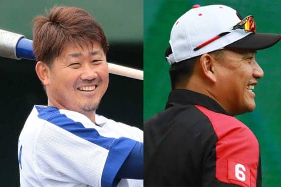 中日・松坂大輔(左)とロッテ・井口監督【写真:荒川祐史】