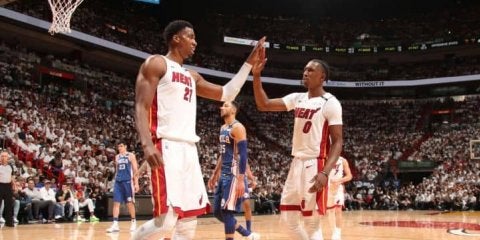 プレータイムが短くなった背景にはルーキーのバム・アデバヨの台頭がありました。アデバヨは19.8分のプレータイムで5.5リバウンド、0.6ブロックと数字としてはホワイトサイドに大きく劣り、優れたリムプロテクターとは認識されがたい成績でした。