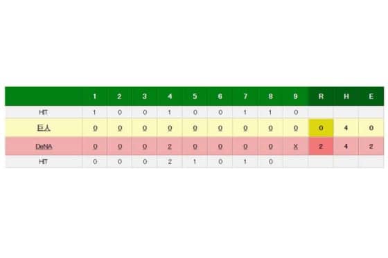 DeNAは主砲の一発で主導権を握ると、先発の井納が巨人打線を7回3安打無失点に抑える好投。後を受けたパットン、三嶋、そして9回は守護神・山崎が無失点リレーで切り抜け完封勝利を飾った。