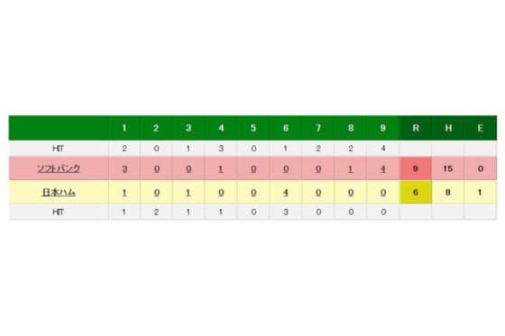ソフトバンク 9-6 日本ハム(22日・東京ドーム)