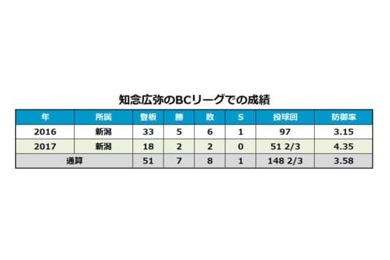 知念広弥のBCリーグ在籍時の成績一覧