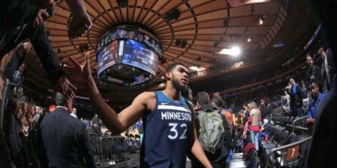ティンバーウルブズのカール・アンソニー・タウンズは、インサイドの強さもあれば、3ポイントシュートを決めるシュート能力もある現代型のセンターとして、ルーキーシーズンから注目されてきました。昨シーズンはウルブズにジミー・バトラーが加わった関係でシュートアテンプトが3.7本減り、得点も25.1から21.3に下がり、スケールダウンした印象を受けます。そこだけを切り取って見ると「NBAの未来を担うセンター」という地位もジョエル・エンビートやニコラ・ヨキッチに譲ってしまいそうです。