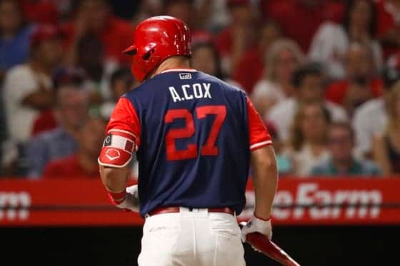 予定されていた「Kiiiiid」ではなく「A.Cox」の文字 エンゼルスのマイク・トラウト外野手が24日(日本時間25日…