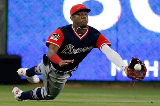驚愕のダイビングキャッチをみせたブレーブスのロナルド・アクーニャ【写真:AP】