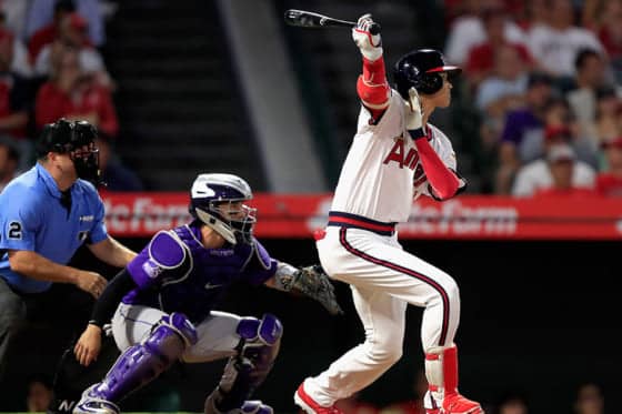 フルカウントから粘るも飛球は左翼手のグラブに収まる エンゼルス大谷翔平投手は27日(日本時間28日)、本拠地でのロッキー…