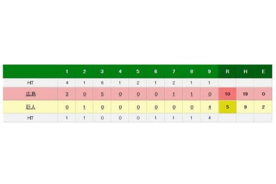 広島、巨人に勝利でマジック「21」 ジョンソンが2年ぶり2桁の10勝目