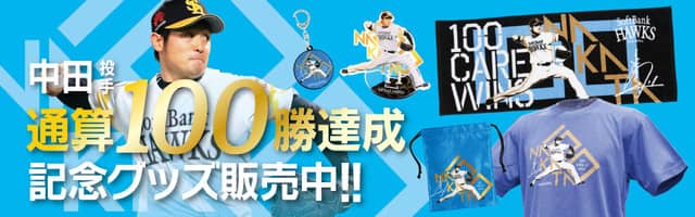 福岡ソフトバンクホークスは、中田賢一投手が8月26日(日)の埼玉西武戦で通算100勝の記録を達成したことを記念して、「中田投手通算100勝達成記念グッズ」の販売を開始した。