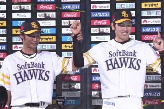 ヒーローインタビューを受けたホークス・明石(左)と石川【画像:(C)PLM】