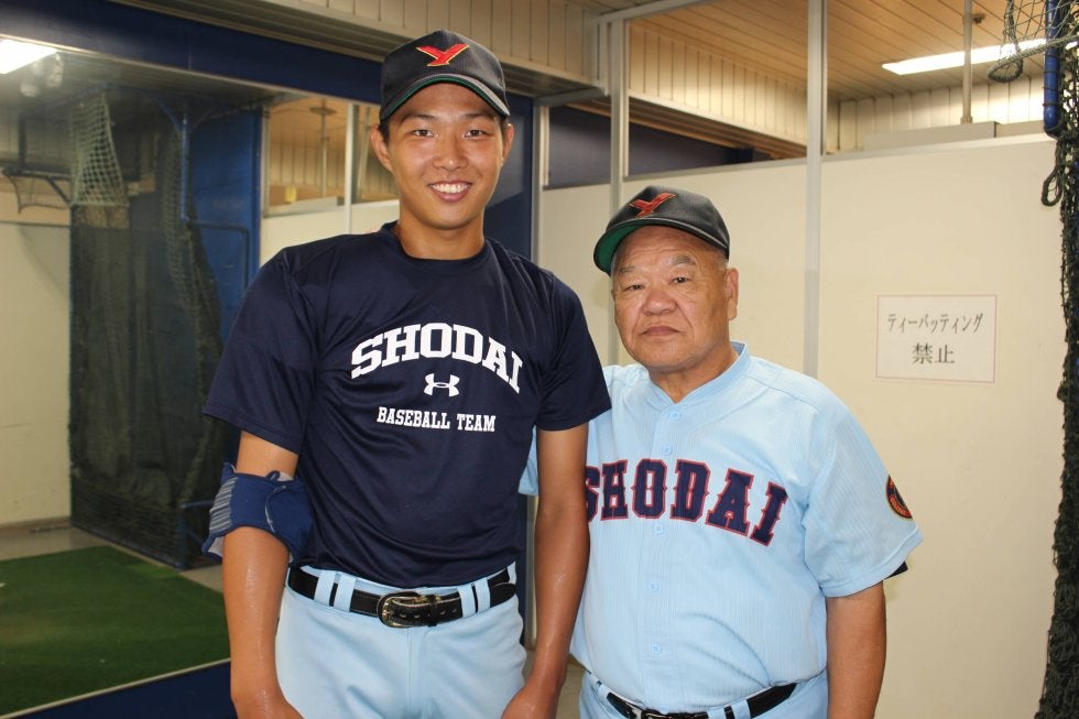 これまで阪神・岩貞祐太投手ら多くの好選手をプロ・社会人に輩出してきた佐々木監督(写真右)も飯田の素質には太鼓判を押す
