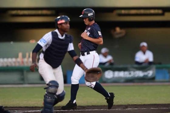 初回は奈良間大己(常葉大菊川)の犠飛、藤原恭大(大阪桐蔭)と野尻幸輝(木更津総合)の適時打などで4点を先制した侍ジャパンU-18代表。2回は3者凡退に終わったが、3回に追加点を奪った。