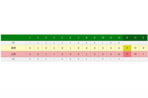 広島 5-4 阪神(4日・マツダスタジアム)