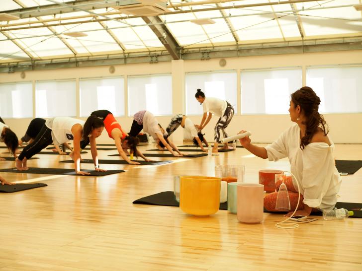 ヨガニードラというものは、軽く身体を動かした後、クリスタルボウルの音色とともに今の身体、心に意識を向けていくというマインドフルネスプログラムらしく、新感覚プログラムといったところでしょうか。