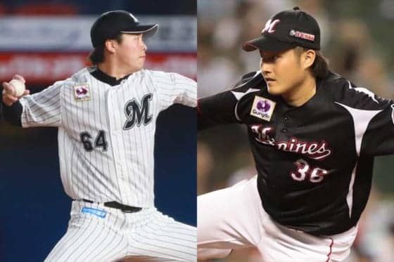 ロッテ・二木康太(左)と有吉優樹【写真:荒川祐史】