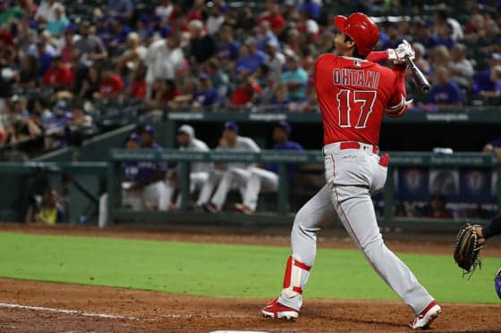 右肘靱帯を再負傷も2発含む4安打3打点! エンゼルス大谷翔平投手は5日(日本時間6日)、敵地レンジャーズ戦に「3番・DH…