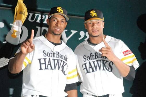 8日のヒーローとなったソフトバンク・グラシアル(左)とミランダ【写真:藤浦一都】