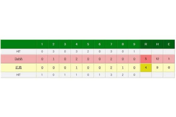 DeNA 5-4 広島(11日・マツダスタジアム)