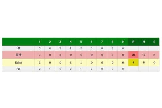 阪神 20-4 DeNA(16日・横浜スタジアム)
