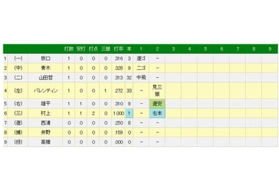 ヤクルトのドラ1村上、プロ初打席初本塁打! 広島岡田のフォークを右翼席へ
