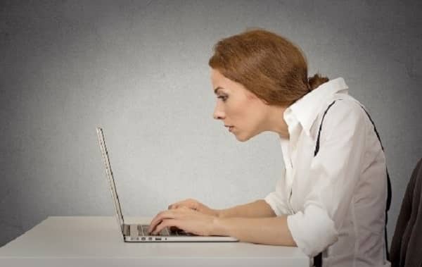 いわゆる猫背の状態で、背中が丸まった状態のことです。背中が丸まると頭が前に出やすく下を向いた状態になり、視界だけでなく、行動にも影響を与えます。