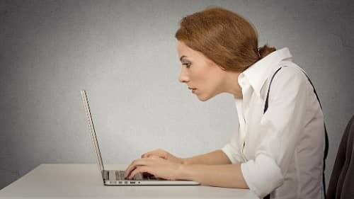 いわゆる猫背の状態で、背中が丸まった状態のことです。背中が丸まると頭が前に出やすく下を向いた状態になり、視界だけでなく、行動にも影響を与えます。