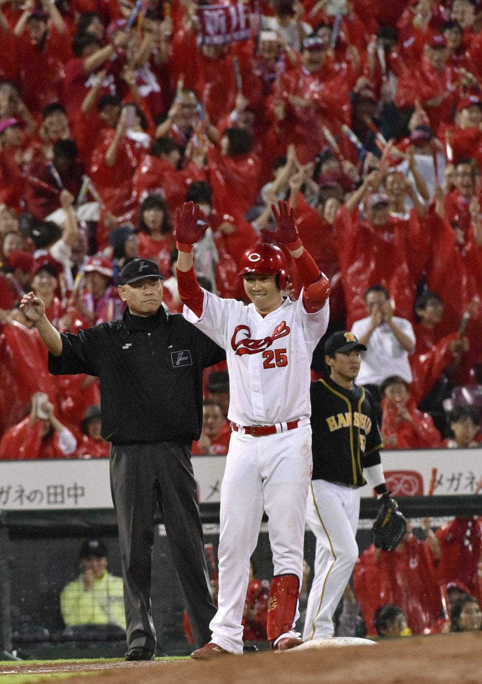 「2塁を回った時、足を滑らせないように気をつけた」と周囲を笑わせたベテランの一打は、球団最年長での3塁打だった。新井は「長いことやってると、そういうのもついてくるよね」と照れくさそうに笑った後、真顔に戻って「みんなが粘って、粘って、本当にいいつながりだった」と後輩を褒めた。さらに「昨日も今日も、雨の中で応援してくれたファンにはありがとうと言いたい」という言葉は、チーム復帰後、大きな声援をくれるファンのために野球をやっている、という20年目の新井らしい言葉だった。
