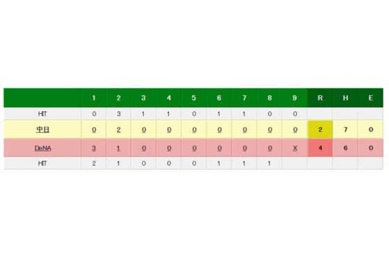 DeNA 4-2 中日(22日・横浜スタジアム)