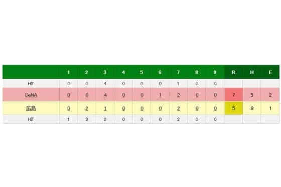 広島対DeNAの試合結果