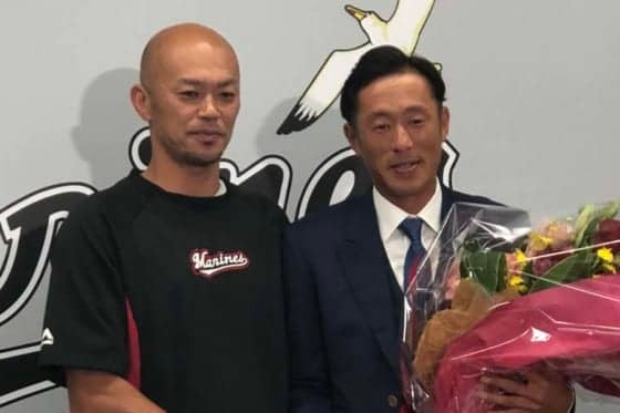 ロッテ岡田が引退会見、福浦の花束贈呈で涙 「12球団最高のファン」に感謝 | 野球