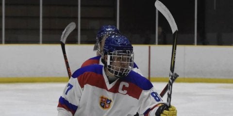 <写真・今試合2ゴールを挙げたFW森井> 9月29日、滋賀県立アイスアリーナにて第65回関西学生アイスホッケーリーグ…