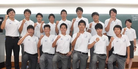 <写真・式後、集合写真を撮る新幹部> 9月15日、総合体育館講義室において、幹部交代式が行われた。新年度の長距離パートを…