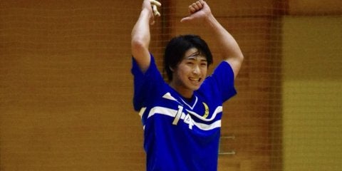 <写真・得点を決めた後、ガッツポーズをする福島> 9月9日、関西福祉科学大学にて平成30年度関西学生ハンドボール…