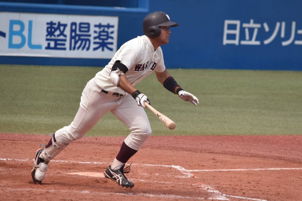 3回、チーム初安打を金子銀佑内野手(2年・早稲田実)が放つと、相手守備がもたつく間に二塁へ進塁。続く鈴木萌斗外野手(1年・作新学院)のタイムリーで先制し、犠打で1死二塁とチャンスを広げると西岡寿祥内野手(4年・早稲田実)のタイムリー二塁打で追加点を奪う。さらに続く福岡高輝内野手(3年・川越東)がライトスタンドへ飛び込む2ランを放ち、4-0。この後2死球でチャンスを作ると池田賢将外野手(4年・高岡南)にもタイムリーが飛び出し、この回打者一巡の攻撃で5点を挙げた。