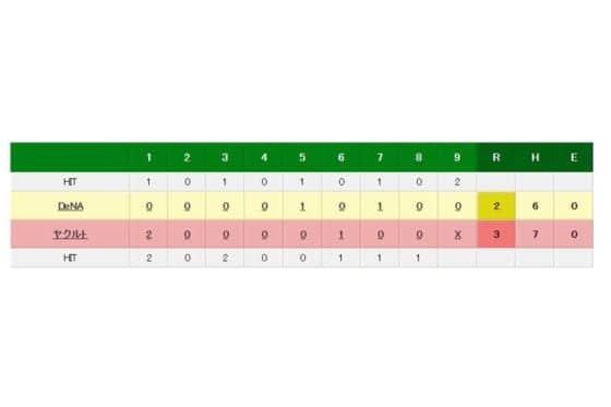 ヤクルト 3-2 DeNA(2日・神宮)