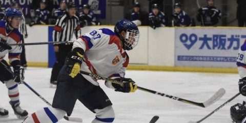<写真・チーム唯一の得点を挙げたFW森井> 10月3日、関西大学高槻アイスアリーナにて第65回関西学生アイスホッケー…