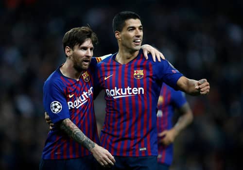 CLトッテナム戦で2ゴールを挙げたリオネル・メッシ(左)とルイス・スアレス