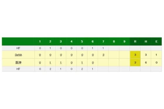 阪神対DeNAの試合経過