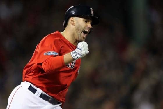 レッドソックスの主軸J.D.マルティネス外野手が5日(日本時間6日)、本拠地での地区シリーズ第1戦で、初回にヤンキース先発左腕ハップから値千金の先制3ランを左翼へ運んだ。「みんなのプレッシャーを少し和らげられたと思う」という一撃に牽引されたチームは、9回に1点差まで追い上げられたが逃げ切り勝利。短期決戦で貴重な初戦白星を飾った。
