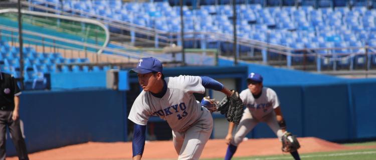 勝ち点0で並ぶ明治大学との2回戦、9点差で敗れた1回戦から建て直しを図りたい一戦は先発した有坂(4年/城北)が圧巻の投球を見せた。