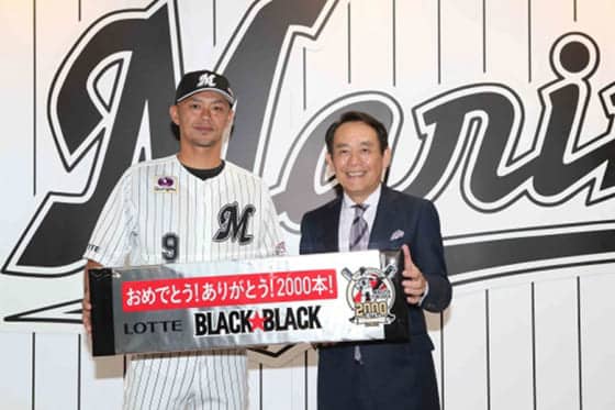 2000安打のロッテ福浦に長さ90センチのブラックブラックガム贈呈 | 野球