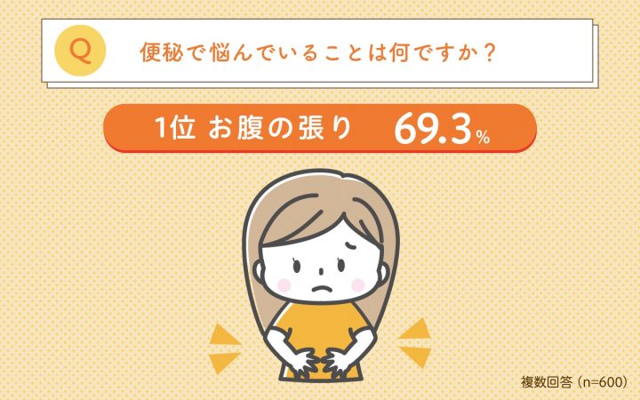 便秘に悩んだことがある方は、具体的にどのような自覚症状に苦しんでいるのでしょうか。今回の調査では、「お腹の張り」が約7割(69.3%)で1位という結果になりました。