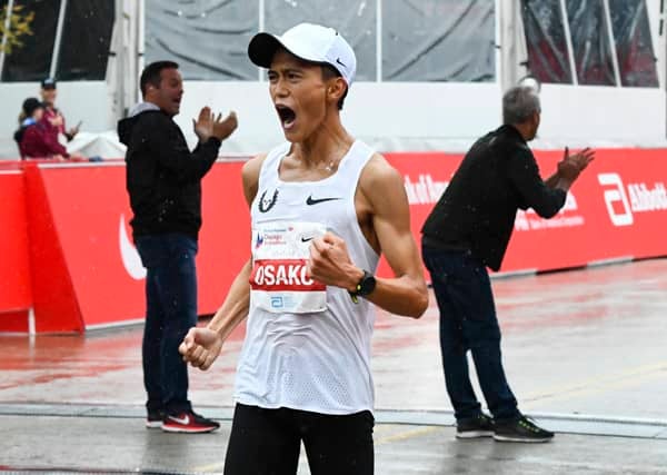 シカゴマラソンで3位に入り、日本記録を樹立した大迫 photo by AP/AFLO