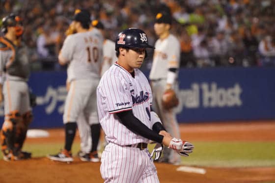 ヤクルト・山田哲人も序盤は凡退したものの、7回にチーム初となる四球を選んだ【写真:荒川祐史】