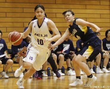 前日の涙を笑顔に変えた。玉川大1回戦目は第1クオーター(Q)で出遅れ、2点差で惜敗。一転、切り替えて迎えた2回戦目では、序盤からシーソーゲームを繰り広げる。第4Qで攻め気を見せた明大が、68―59で勝利を収めた。連敗を3で止め、入替戦進出に望みをつなげた。