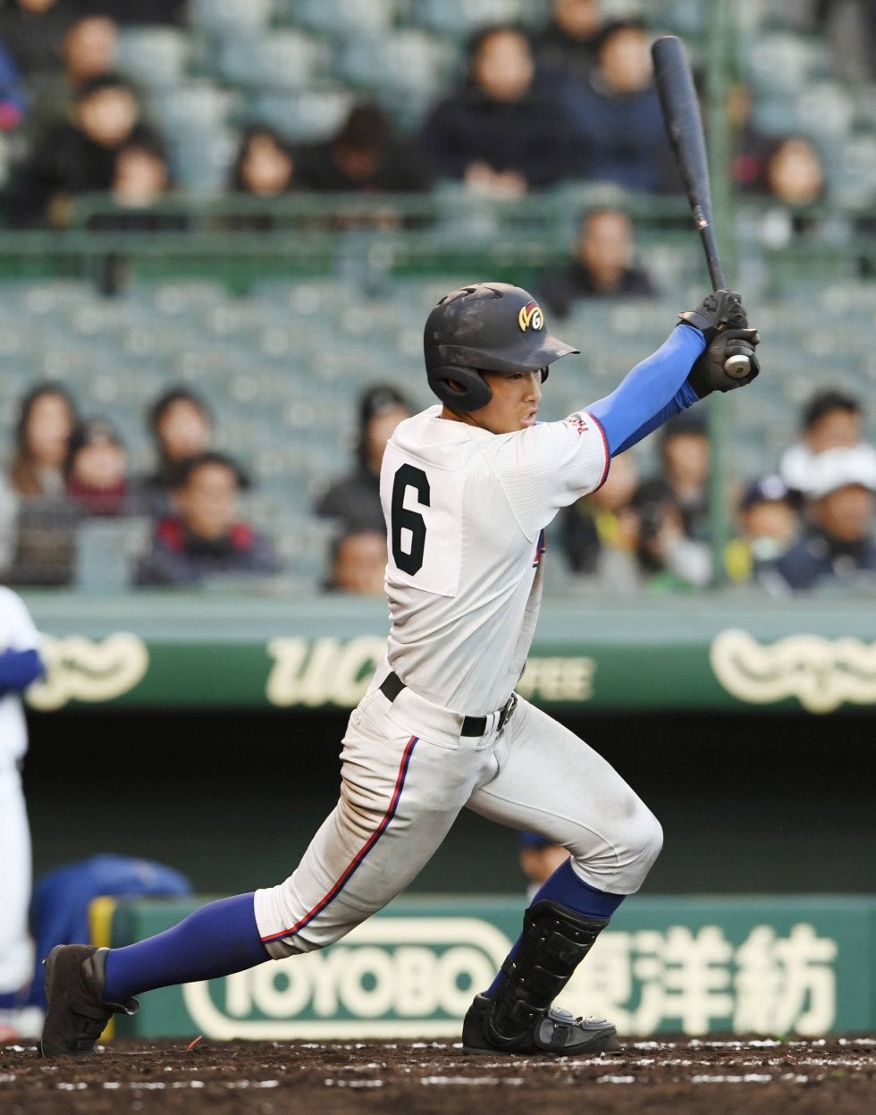 いい1番バッターのショートだとは聞いていたが、今春のセンバツ初日、瀬戸内戦の1回表、いきなりレフトヘェンス直撃。快足スリーベースの衝撃デビューだった。それは初出場だった明秀日立を全国区にする名刺代わりには十分。7回にもフェン直のツーベース。4対3で初勝利をもたらした。2回戦の1回、先頭でまたもフェン直ツーベースを放って、積極的なフェン直マニアだ。2回戦は10対1で高知を退けた。だが、3回戦の相手は大阪桐蔭で投手は根尾。8回まで2安打に抑え込まれ、1対5の完敗だった。