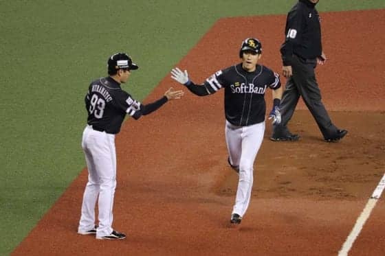 鷹打線爆発、5回で12得点 上林がCS最多タイ6打点でサイクル王手 | 野球