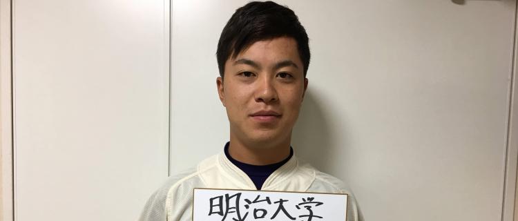 明大の“安打製造機”。正確なバットコントロールが持ち味で、三振が非常に少ないのも特長だ。三塁手でベストナインに2回、今年の春季リーグ戦では遊撃手としてベストナインに選ばれた。