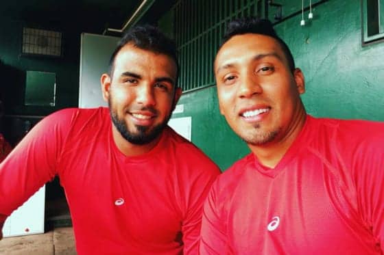 BCリーグ福島で活躍する元中日ロンドン(左)とビスカヤ【写真:佐藤直子】