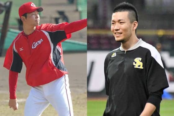 広島・大瀬良(左)、ソフトバンク・千賀【写真:編集部、藤浦一都】