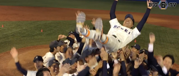 <法政大学優勝おめでとう!> 12季ぶり45回目の優勝を飾った法大の選手たちの喜びをおすそ分け!青木監督、向山(④法政二…