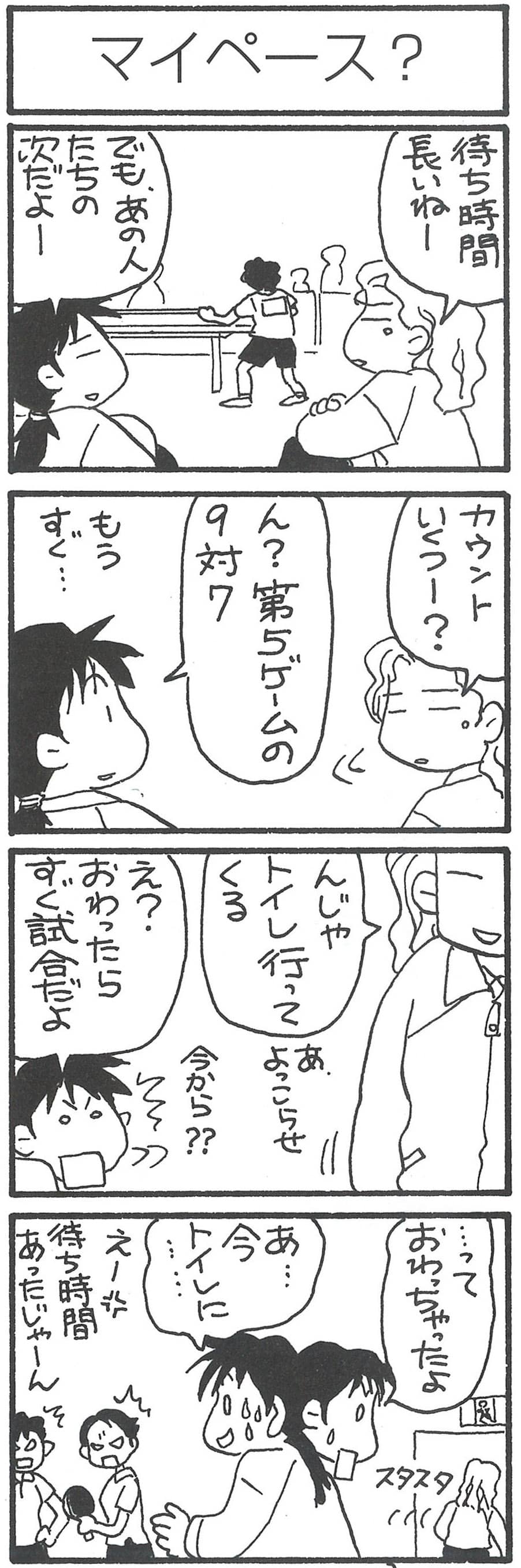マイペース?【卓球4コマ漫画・レディース卓球24時】
